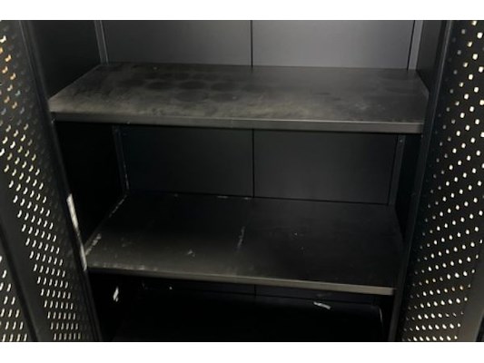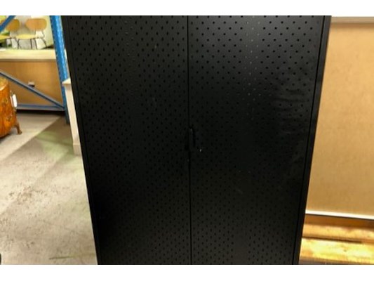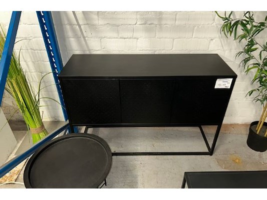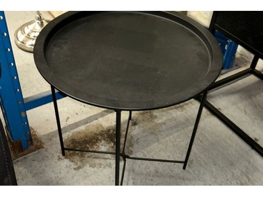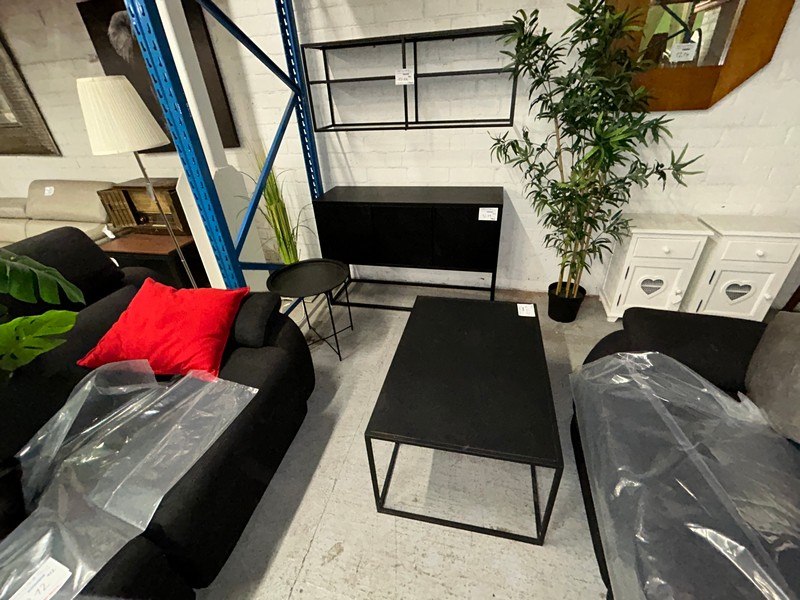 5 stuks, zwart metaal waaronder tafel, 2 kasten, hangmeubel, bijzettafel, excl planten