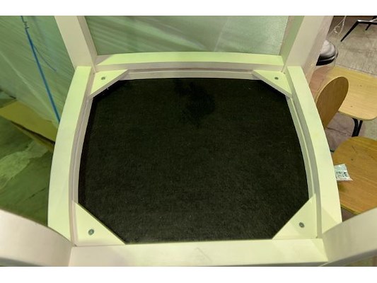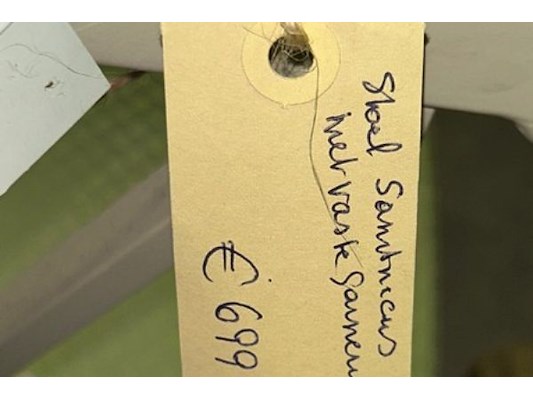 Nieuwprijs 699 euro, gebroken wit, met groene stof
