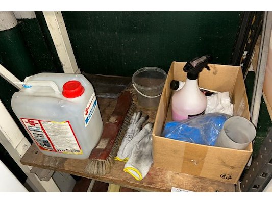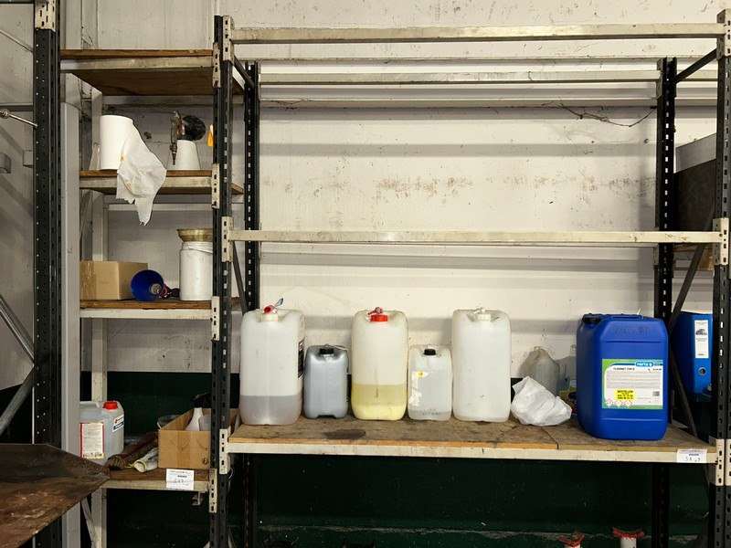 Rek bestaande uit 4 staanders van 440 x 50 x 254 cm hoog met inhoud als geopende producten en toebehoren excl lot 32-33-3...