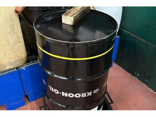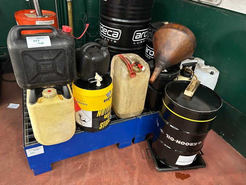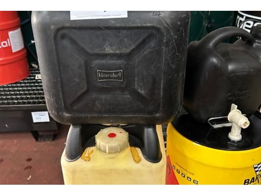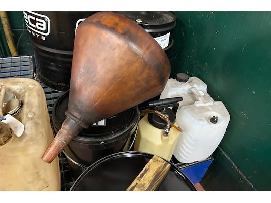 Zo goed als leeg, trechter, drukspuit, lekbak