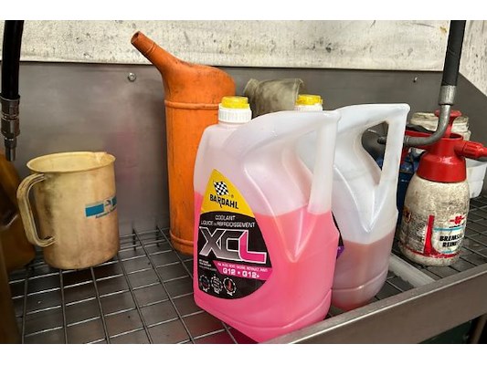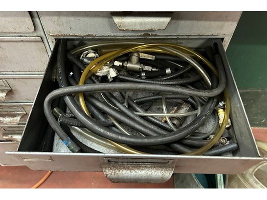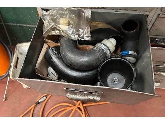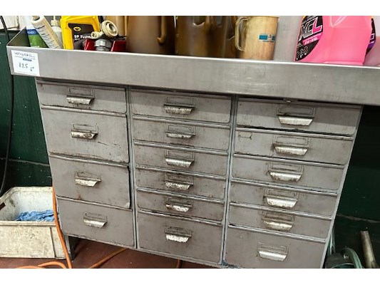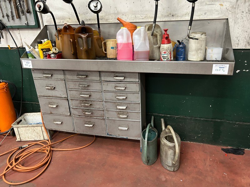 Lekbak 190 x 48 x 40 cm hoog met inhoud zoals producten en kannen + ladenkastje 117 x 30 x 95 cm hoog met inhoud zoals ge...