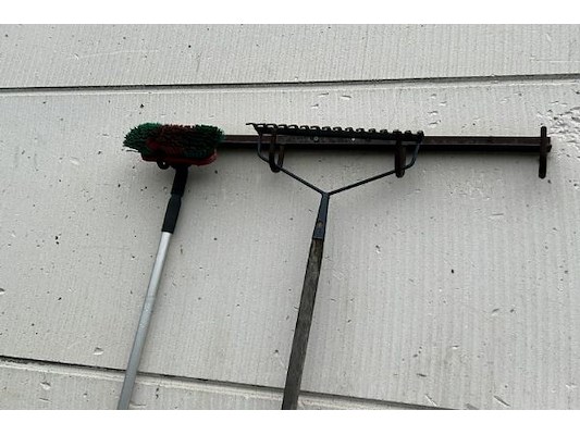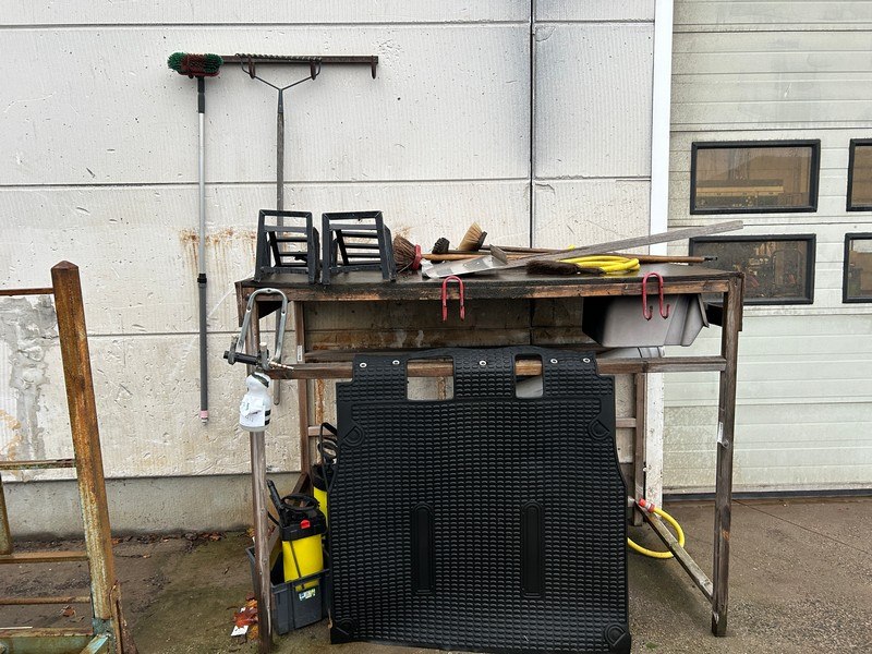 Gereedschap op en onder afdak, oa verstuivers, borstels