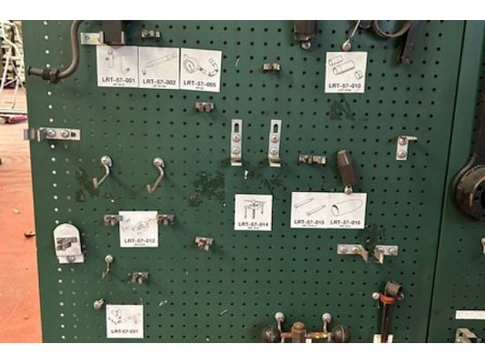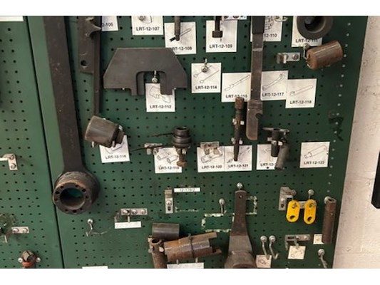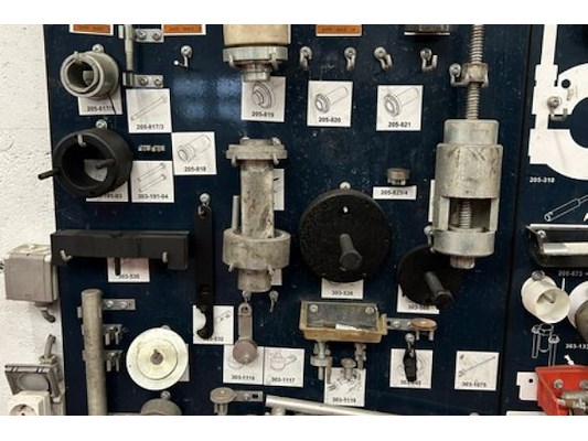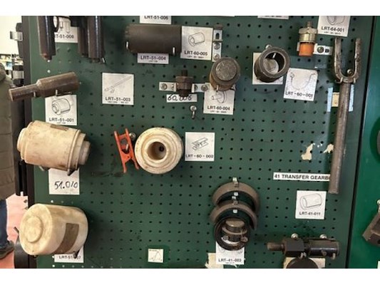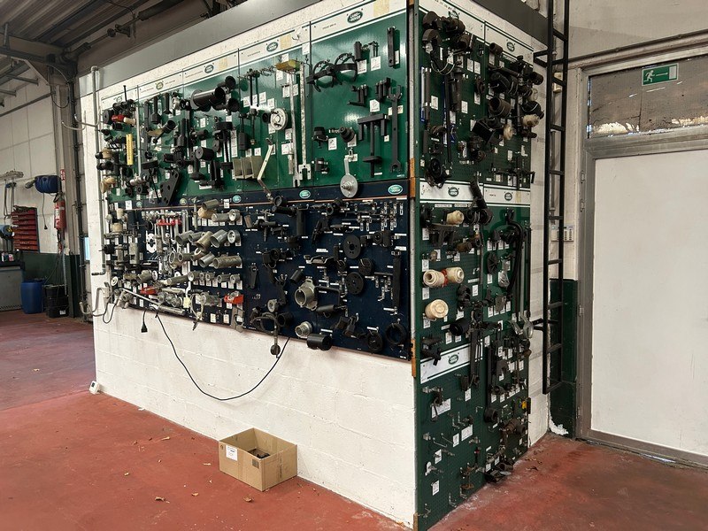 Tools voor Land Rover, hangend aan 16 borden, oa voor motor, transmissie, versnellingsbak, vering, zelf te demonteren