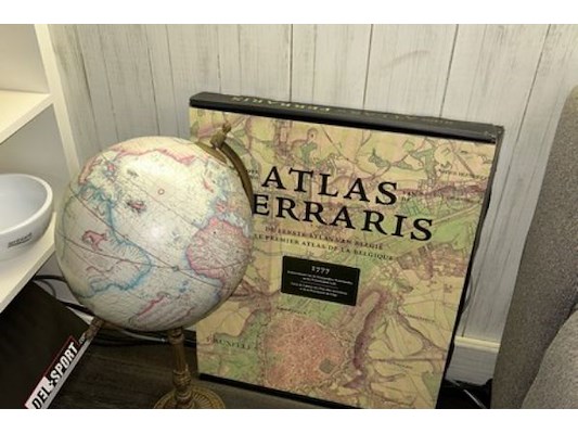 Diverse decoratie: wereldbol, atlas, mandelke, tassen, kom