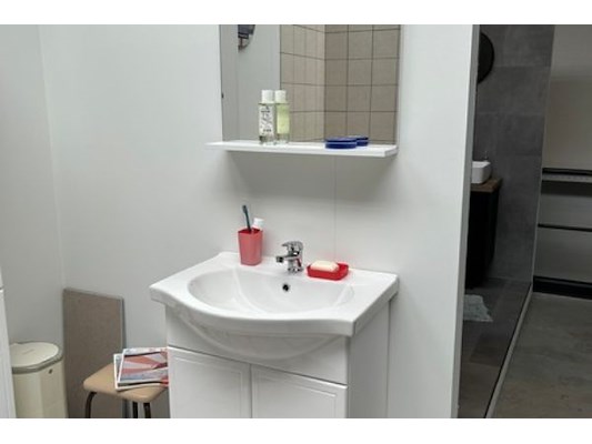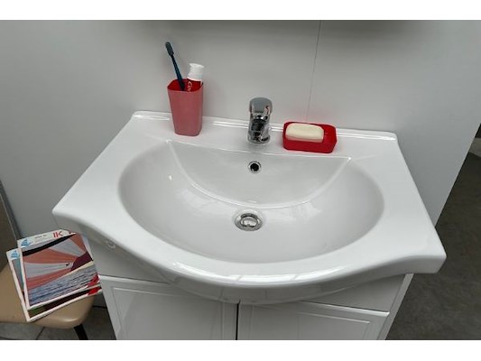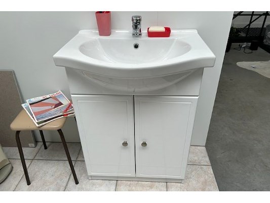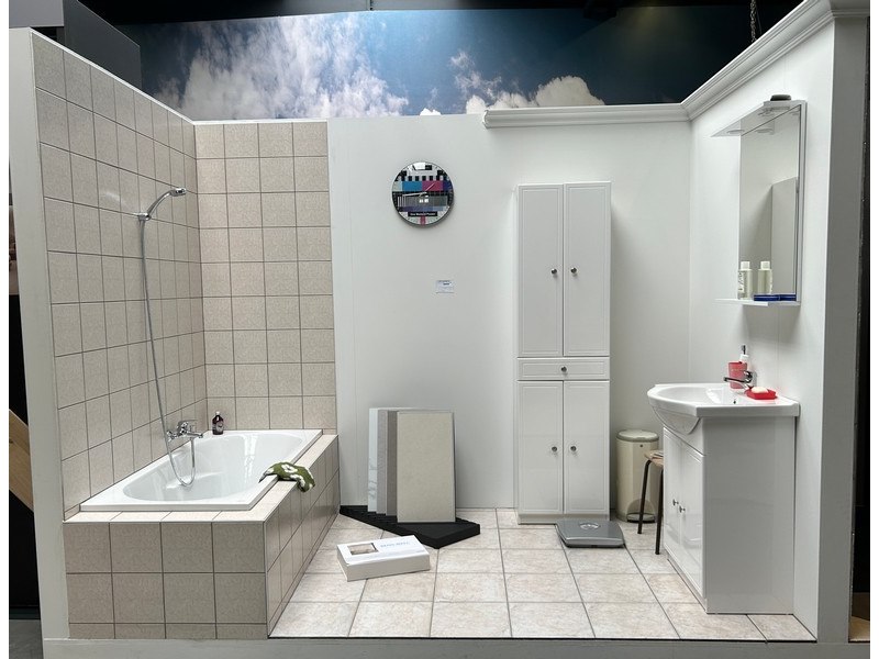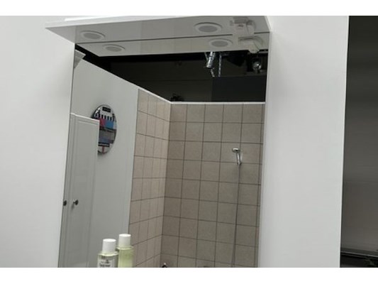 : Sensea bad met douche, kast, wastafel/kast, spiegel, weegschaal, zelf demonteren