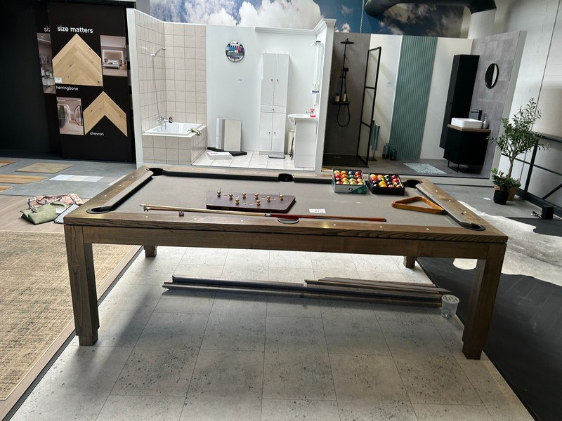 243 x 138 x 81 cm hoog, stokken en ballen, stokkenhouder, kan ook tot normale tafel worden gemaakt met de e...