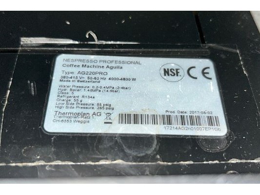 Nespresso machine Aguilla, type AG220pro, 4000-4200W + koffietassen , bordjes, reinigingstabletten voor melksysteem