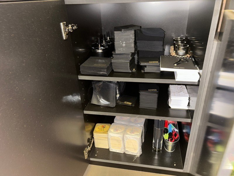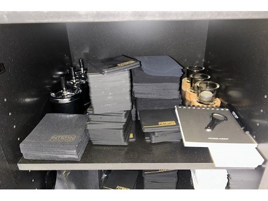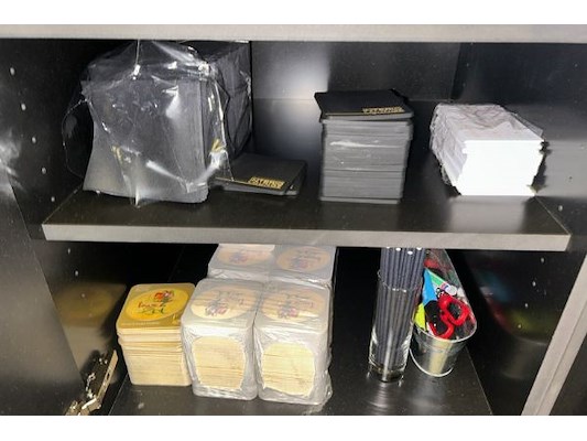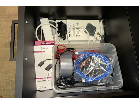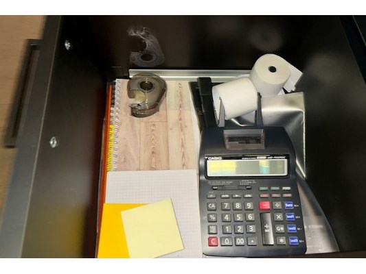 : rekenmachine, kabels, onderzetters, vodjes, producten, vuilnisbakken