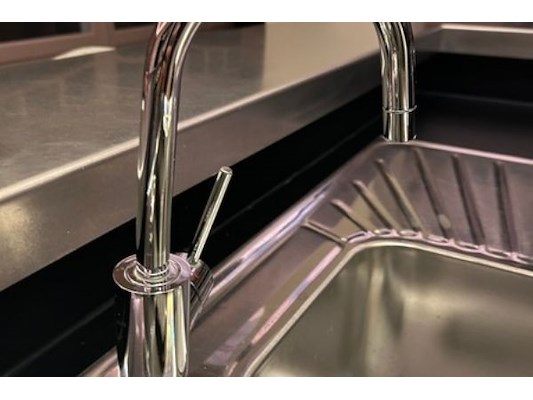 Toonbank in u-vorm: met tapkraan en toebehoren, spoelbak en flessenko...