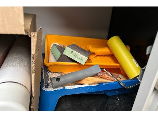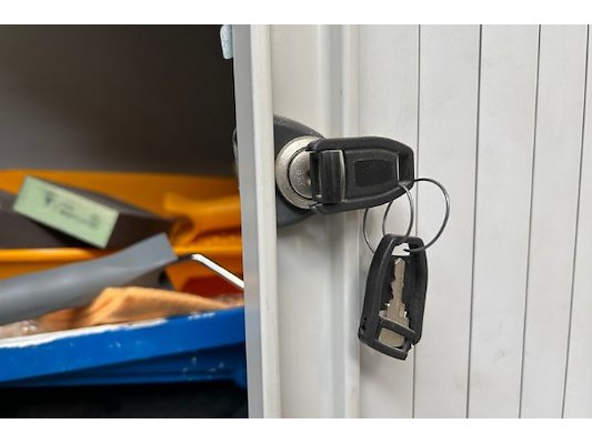 Kast 120 x 43 x 133 cm, met sleutels, inhoud als schroeven en wegenverf