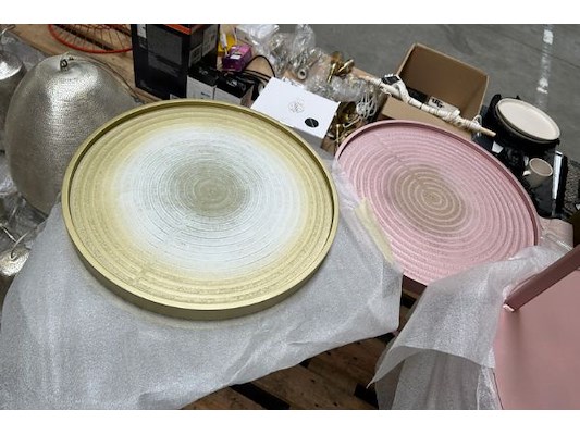 57.5 cm diameter, 51 cm hoog, roze en goud