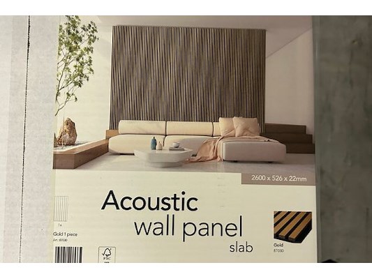 Ongeveer 36 akoestische wandpanelen, 2600 x 526 x 22 mm p/st, 1st P/d, gold, nieuw