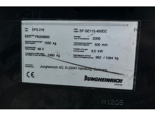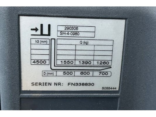 Bj 2006, hefvermogen 1550 kg, 3 mast, doorrijhoogte 210 cm, max masthoogte 500 cm, vorklengte 115 c...
