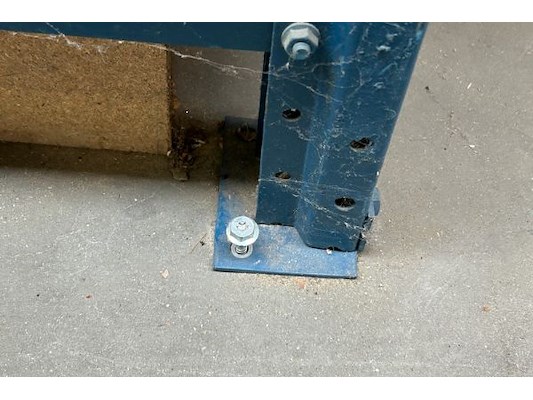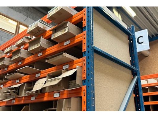 565 x 100 x 300 cm hoog, bestaande uit 3 staanders, 24 banken, 268 cm lang, excl inhoud, zit ook in lot 904