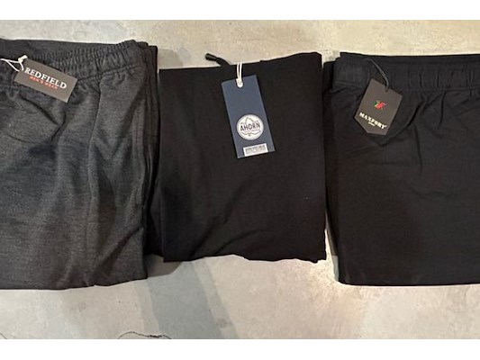Ongeveer 75 joggingbroeken maat 2 XL tot 8XL, kleuren grijs, blauw, zwart, merken zoals Redfield, Maxfort, Ahort, verkoop...