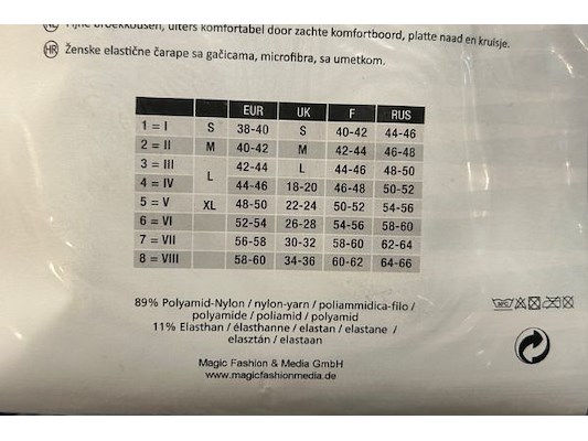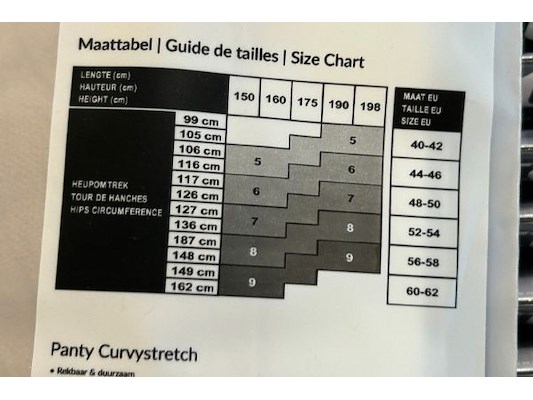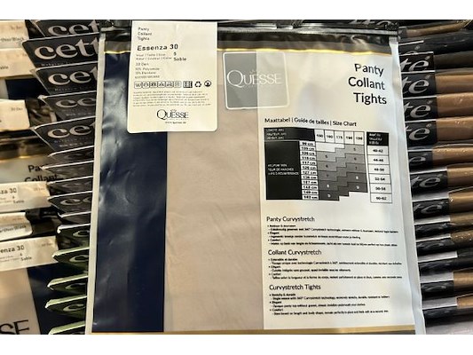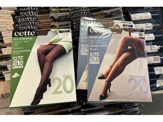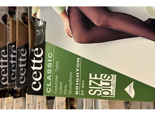 Ongeveer 140 panty's en 15 antipress kousen, merken als Cetti, Essenza, Dusen, grote maten vzn 2 XL tot 4 XL of maat 48 t...