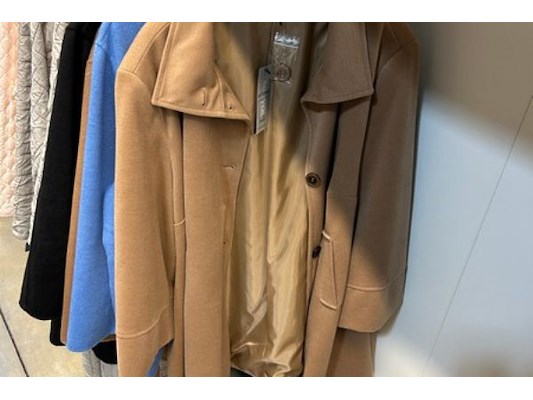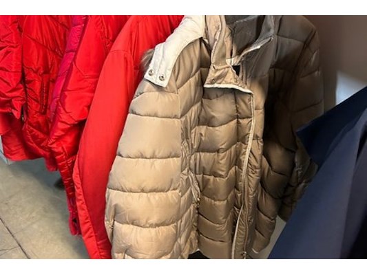 Ongeveer 45 dames jassen/mantels, zowel sportieve als geklede jassen,, merken als Trandsen,See you, Mona Lisa, maat 52 to...
