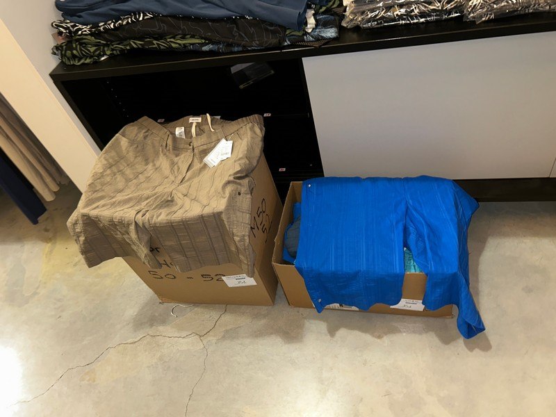 Ongeveer 80 bermuda's dames, vooral merk KJ Brand, diverse kleuren, maat 52 tot 68, verpakt in 2 dozen