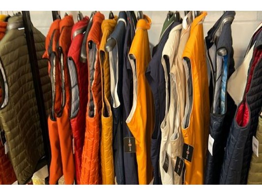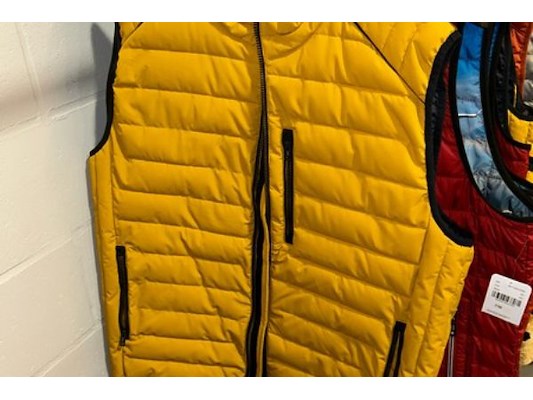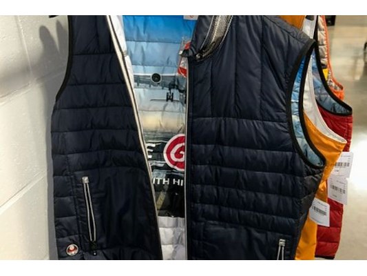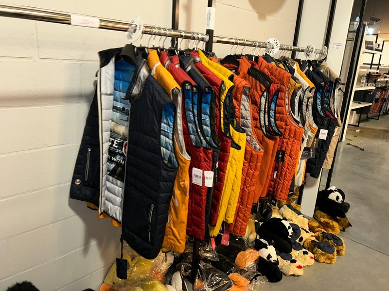 Ongeveer 30 mouwloze vesten, merken als G1, S4 jacks, maat 4XL tot 8XL, verkoopprijzen van 99 tot 180 euro