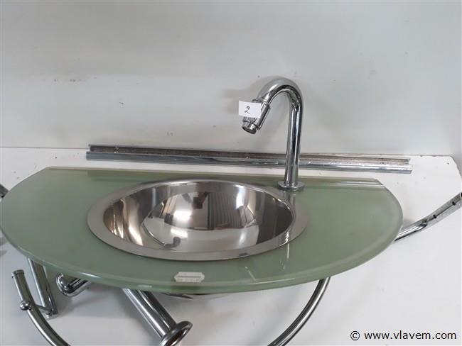 1 x wasbak inox glazen blad chrome sifon + kraan showmodel