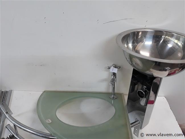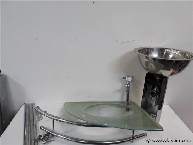 1 x hoekwasbak inox glazen blad chrome sifon + kraan showmodel