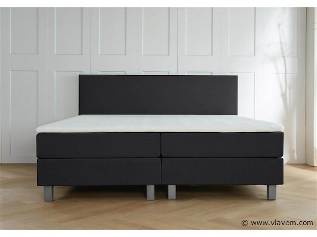 15651 Vlakke boxspring Turijn. Afmeting 140 x 200, Zwart. Het hoofdbord is even breed als het bed (voorbeeld 180x100x8cm) de onderboxen zijn hard. Het matras bestaat uit 2 stuks. het matras is 7zone pocket geveerd. de topper is ca 5cm dik en is van het materiaal comfort schuim. de pootjes zijn grijs vierkant en 12 cm hoog.