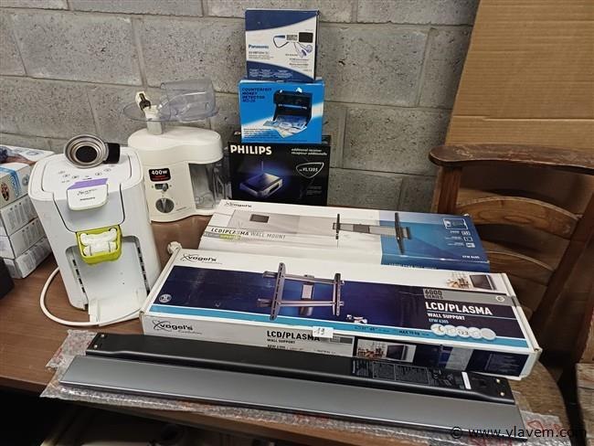 Lot div. elektro, wo. luidsprekers en ophangbeugels voor tv