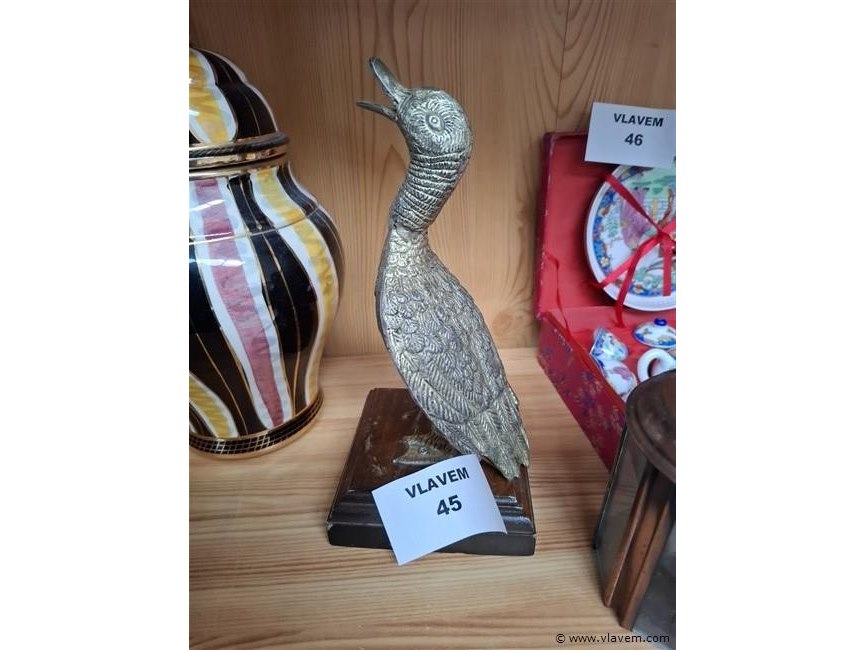 Antieke zware metalen eend op sokkel 25h