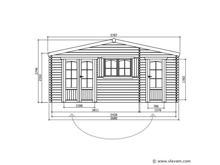 Tuinhuis rostock. Blokhutprofiel van 40mm dik scandinavisch vuren hout, overschilderbaar, een dubbele deur met glas erin, een enkele deur met glas op de voorkant, een dubbel draaikipraam met glas, dakhelling van 12°, rode shingles op het dak, sneeuwlast=75kg/m2, 1 paar luikjes. Luifel aan de voorkant van 60cm, verluchtingsrooster. LOW ENTRY=lage instap voorzien van een aluminium balk. Zelfbouwpakket af te halen in hamont hefruck aanwezig.