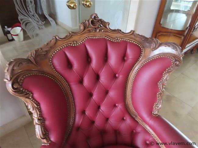 Barok salon 3+1+1 leder en houtsnijwerk
