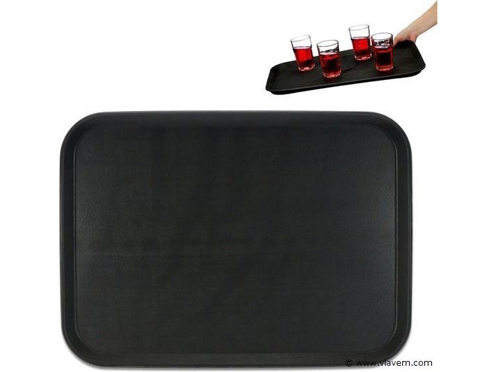 Horeca dienblad - rechthoekig - 56 x 41 cm - opstaande rand - antislip - zwart-retouren van Relaxdays