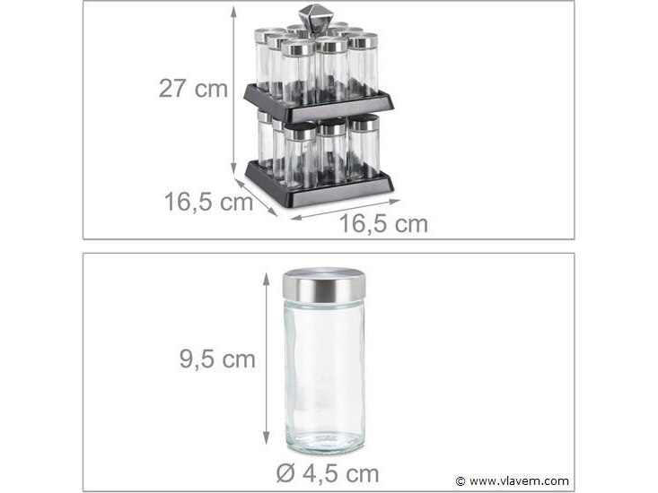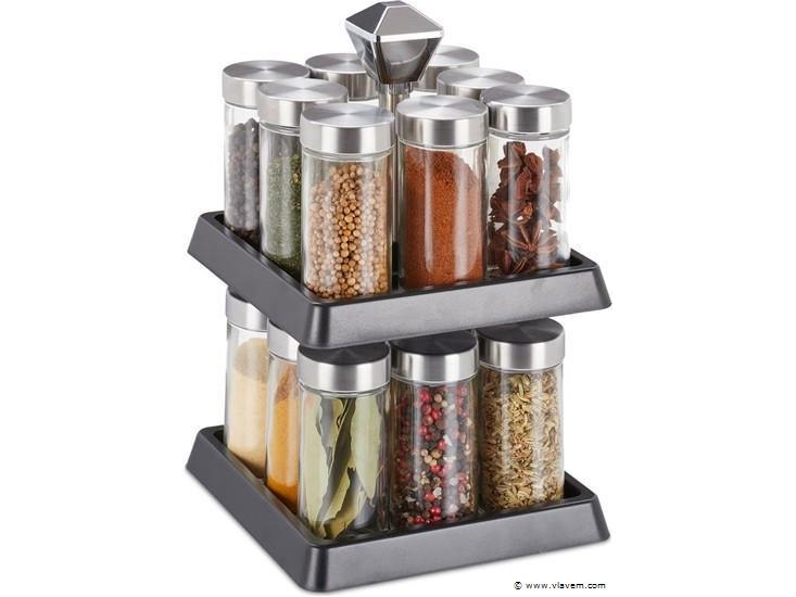 Rvs kruidenrek - 15 potjes - 2 laags - draaibaar - staand - rvs - 27x16,5x16,5 cm-nieuw in doos-retouren van relaxdays