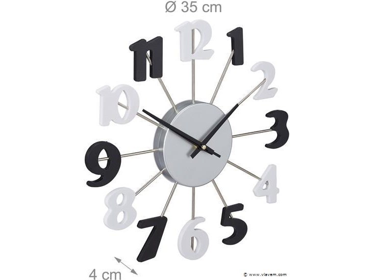 Design wandklok - Ø 35 cm - open design - met secondewijzer - zwart-wit-retouren van Relaxdays