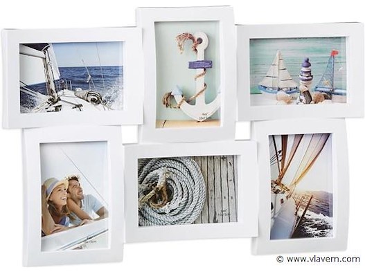 Fotolijst - 6 foto’s - 3D-look - 10x15 cm - collagelijst - wit- Nieuw