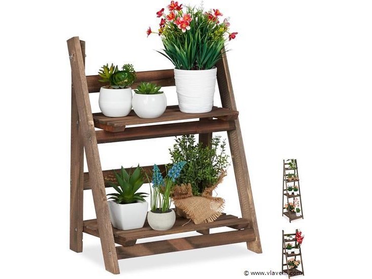 Plantenrek - 2 etages - hout - klapbaar - 51,5x41x24 cm - donkerbruin-nieuw in doos-retouren van relaxdays