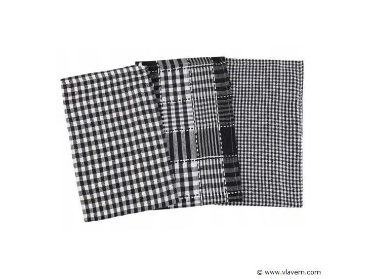 12x Vaatdoeken in hotelkwaliteit -35x55cm -3 Ruitdesign en in zwart - mix geleverd-nieuw en ongebruikt