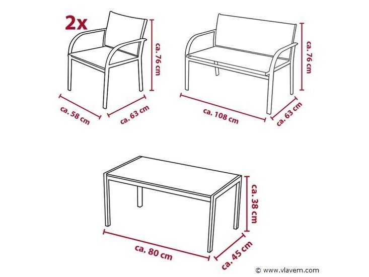 Garden tuinset Parijs 105 cm set van 4-tafel met gehard glas-bank en 2 stoelen-uV en weersbestendig -nieuw en ongebruikt