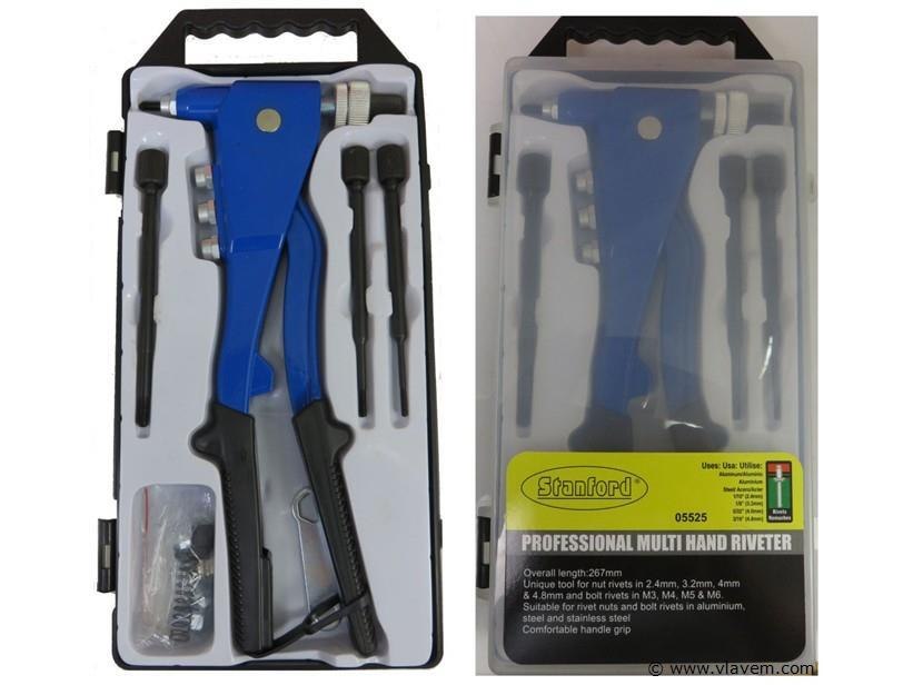Popnageltang, 265 mm, Voor moerklinknagels 2.4 - 3.2 - 4 - 4.8 en boutklinknagels M3 - M4 - M5 en M6, Extra omschrijving (1 x geschikt voor inwendig en 1 x geschikt voor uitwendig gebruik). Voorzien van geisoleerde grepen