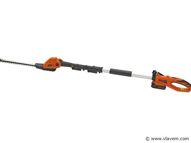 Kibani accu Elektrische Heggenschaar XXL 18 volt - 49 cm Zwaardlengte – Telescopisch, verstelbare hoogte van 190 tot 250 cm is de telescopische heggenschaar geschikt voor heggen van elk formaat. Ook is de kop naar wens instelbaar, in een werkhoek van -60° tot +80°.