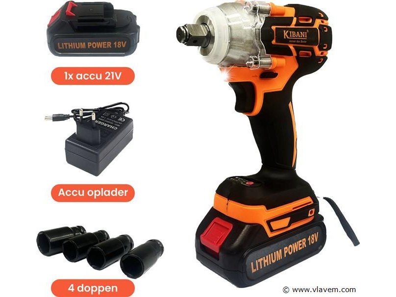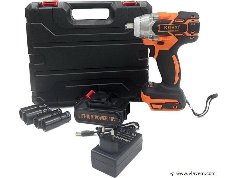 Accu Slagmoersleutel 18 volt in koffer, met lader en slagdoppen