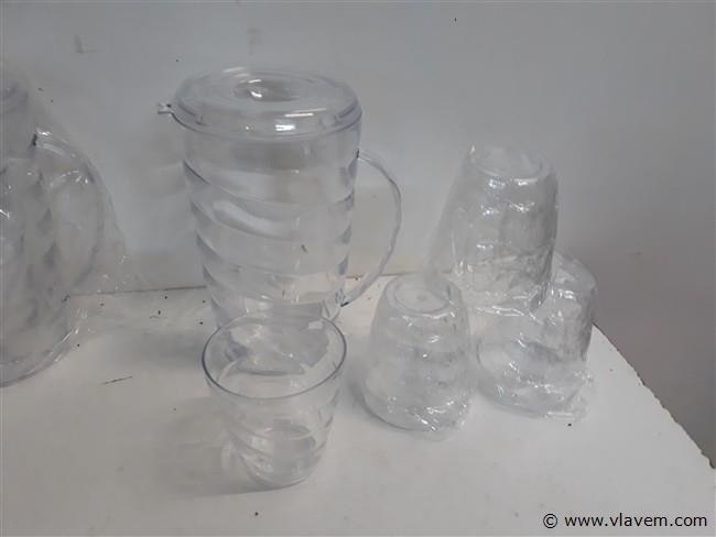 3 x Schenkkan PVC transparant 1 L met 4 bekers