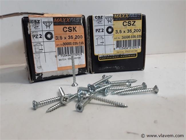 2 x Houtschroeven spaanplaatschroeven wit verzinkt 3,5x35mm kruiskop PZ2 200 stuks Maxxfast