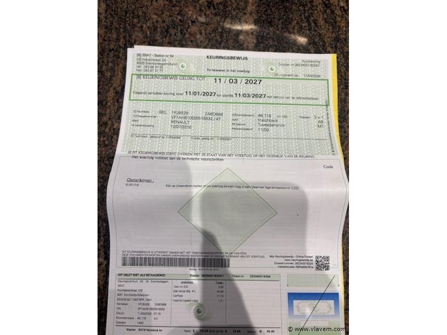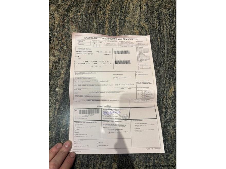 Fabr. RENAULT, type TWINGO OPEN AIR, eerste inschrijving 07/2016, km-stand plm. 46.118, benzine, 999 cc, 52 kW, euro 6b, chassisnr. VF1AHB10555516532, vv. airco, open dak, centr. vergrendeling, elektr. ruiten en mistlichten. Alle doc. en aanvaag tot inschrijving aanwezig. Voertuig is reeds gekeurd voor verkoop. Keuringsbewijs geldig tot 11/03/2027 aanwezig. Carpass aanwezig.