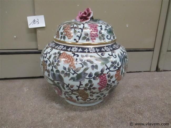 Chinese deksel vaas H22 diam. 22, 1 blad van de bloem is beschadigd
