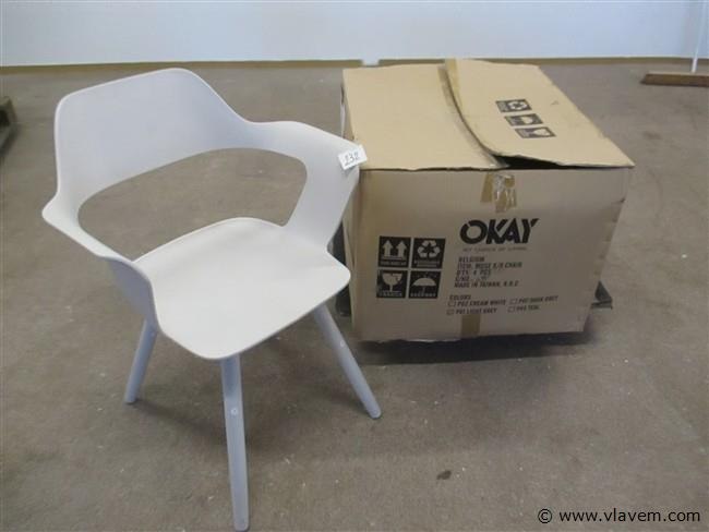 4 nieuwe stoelen in pvc,licht grijs,nieuwprijs €79/stoel