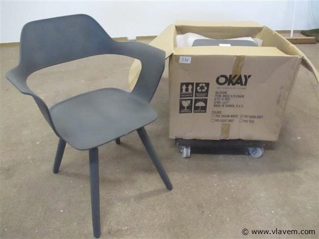 4 nieuwe stoelen in pvc,donker grijs,nieuwprijs €79/stoel