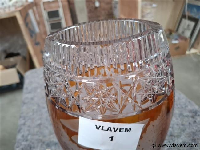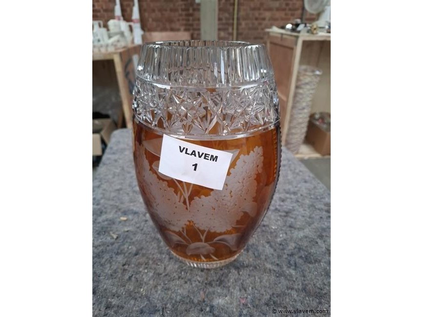 Prachtige kristal vaas 33h met amberkleurige onderkant, vermoedelijk val saint lambert(kleine beschadiging zie foto)