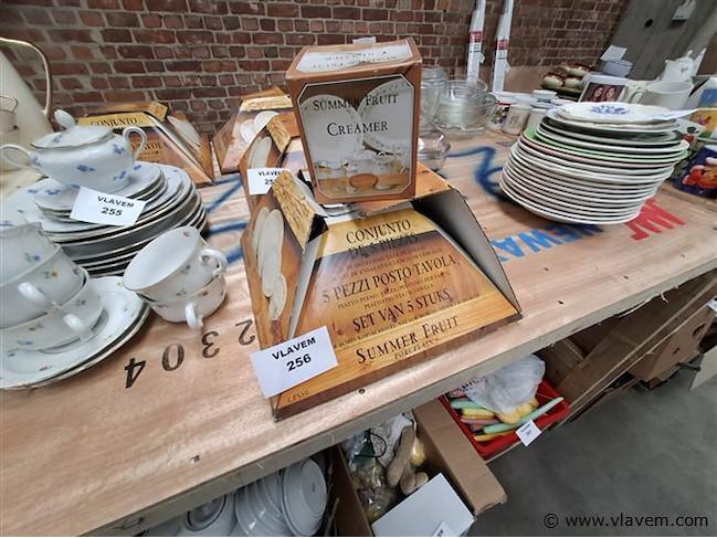 Set van 5 stuks vaatwerk en setje suiker en melk nieuw in doos