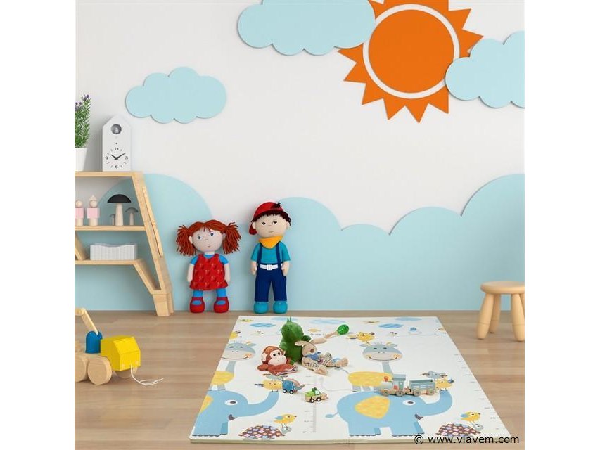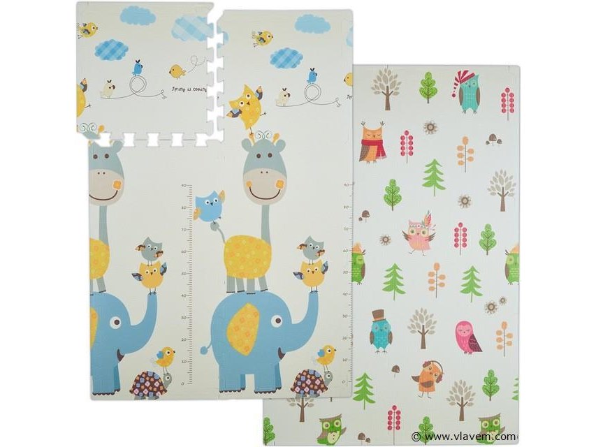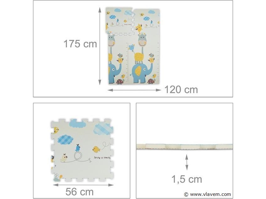 Speelmat puzzel - prints: bosdieren / wilde dieren met meetlat - 120x175 cm - foam - peuter-retouren van Relaxdays