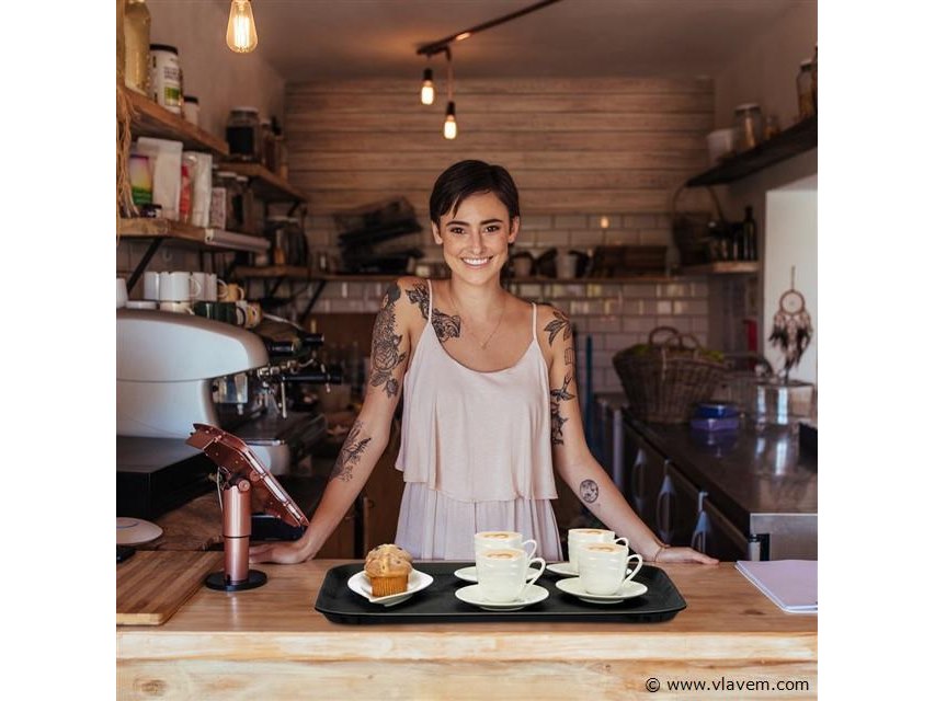 2xhoreca dienblad - rechthoekig - 56 x 41 cm - opstaande rand - antislip - zwart-retouren van Relaxdays